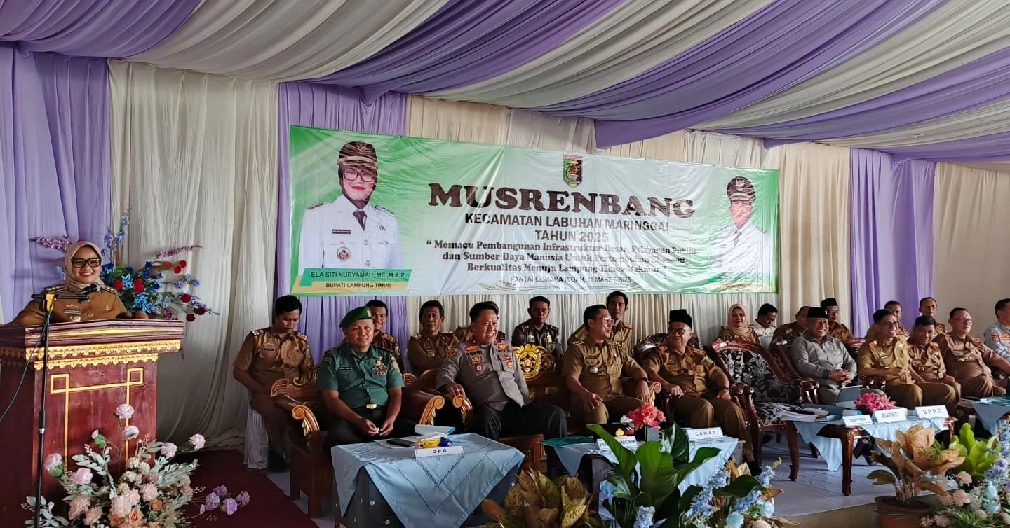 Labuhan Maringgai – Bupati Lampung Timur Ela Siti Nuryamah, membuka musrenbang tingkat Kecamatan, selasa (11/3/2025) kegiatan ini Membahas dan memaparkan program untuk 2026,