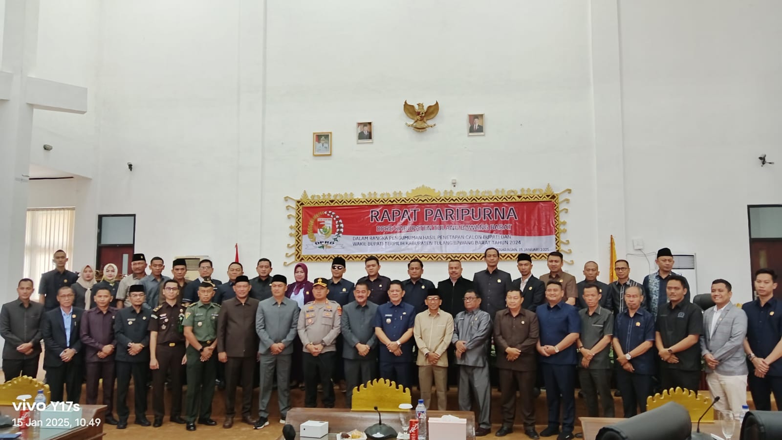 Dewan Perwakilan Rakyat Daerah (DPRD) Kabupaten Tulangbawang Barat (Tubaba) melaksanakan Rapat Paripurna untuk menyampaikan pengumuman tentang penetapan calon Bupati dan Wakil Bupati terpilih tahun 2025.