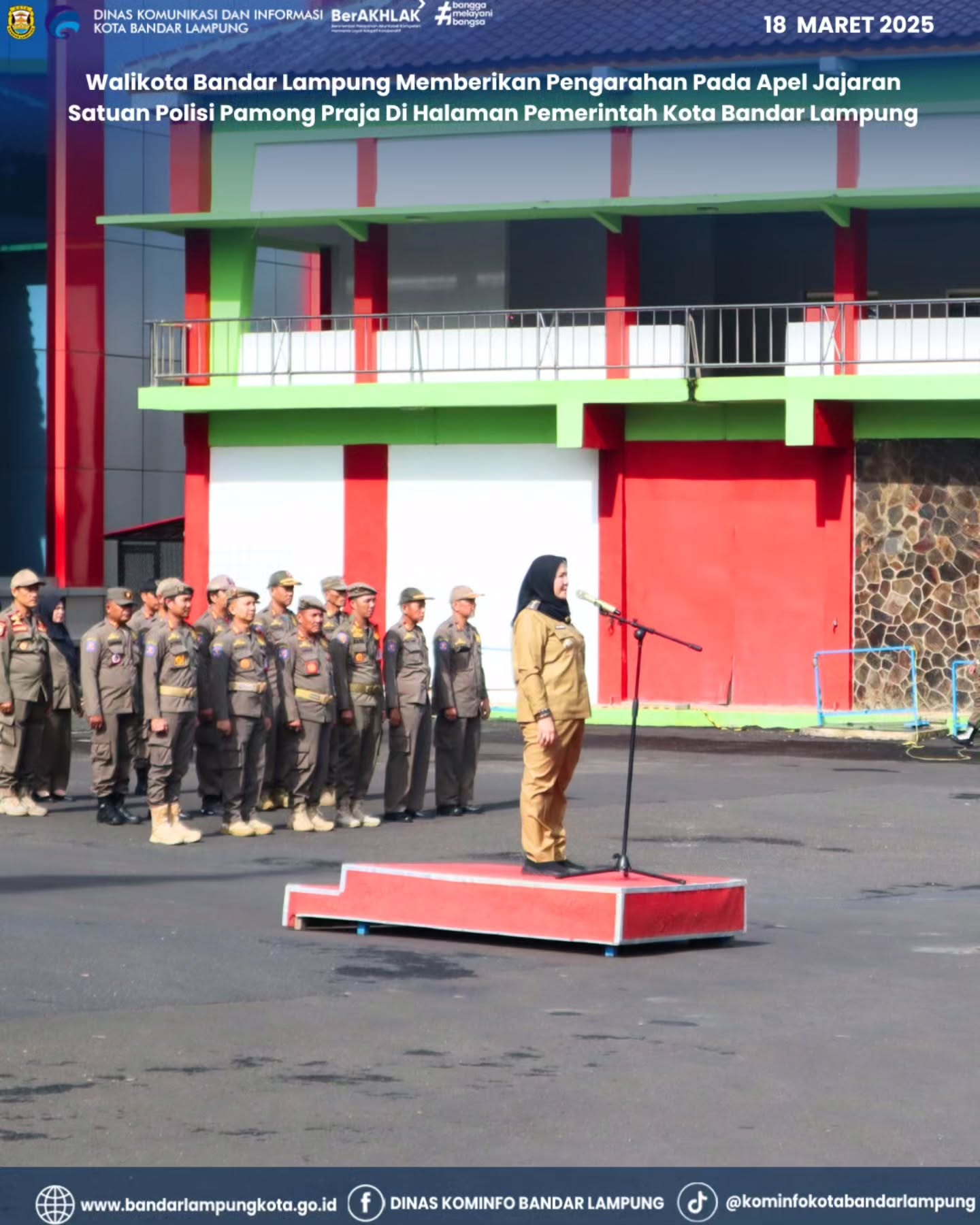 Walikota Bandar Lampung memberikan Pengarahan pada apel jajaran Satuan Polisi Pamong Praja Di Halaman Pemerintah Kota Bandar Lampung, Selasa (18/03/2025).