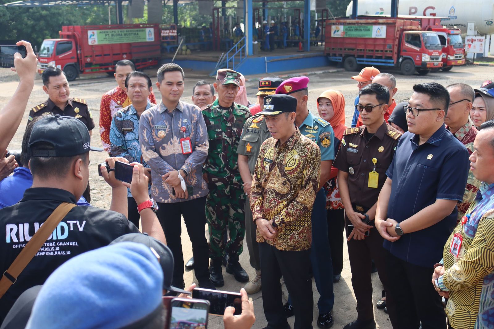 Kotabumi – Pemerintah Kabupaten Lampung Utara bersama Forum Komunikasi Pimpinan Daerah melaksanakan Inpeksi Mendadak di Pasar Sentral Kotabumi, Gudang Badan Urusan Logistik (BULOG) dan Stasiun Pengisian Bahan Bakar Energi CV. Adi Sejahtera.