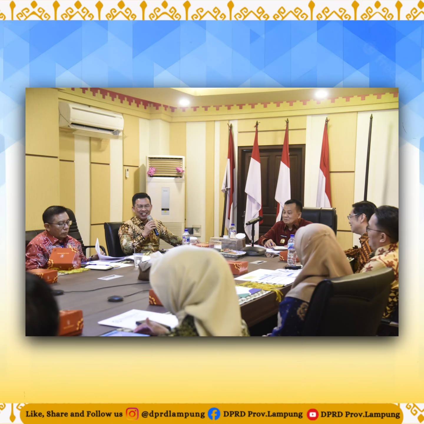 Rapat ini bertujuan memberikan pemahaman yang sama terhadap setiap kebijakan serta penyelesaian permasalahan melalui koordinasi lintas sektoral instansi, sebagai upaya optimalisasi penyelenggaraan Program JKN-KIS. Acara berlangsung di Ruang Rapat Sakai Sambayan, Kantor Gubernur Lampung, Kamis (12/6/2025).