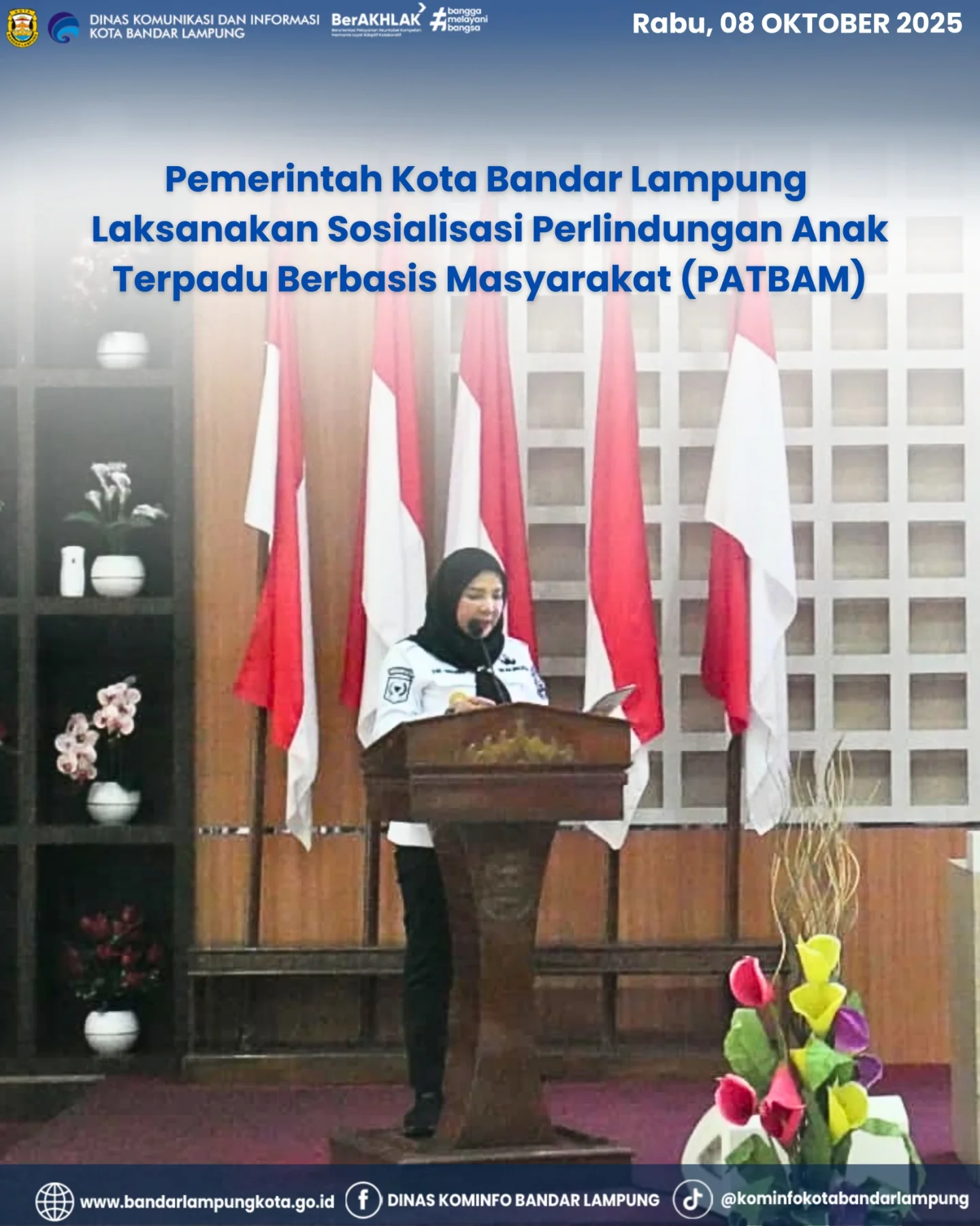Bandar Lampung, 8 Oktober 2025 — Pemerintah Kota Bandar Lampung menyelenggarakan Sosialisasi Perlindungan Anak Terpadu Berbasis Masyarakat (PATBM) sebagai upaya untuk meningkatkan kepedulian dan peran aktif masyarakat dalam melindungi anak-anak dari berbagai bentuk kekerasan. Acara ini diresmikan oleh Wali Kota Bandar Lampung, Hj. Eva Dwiana, pada Rabu (8/10/2025).