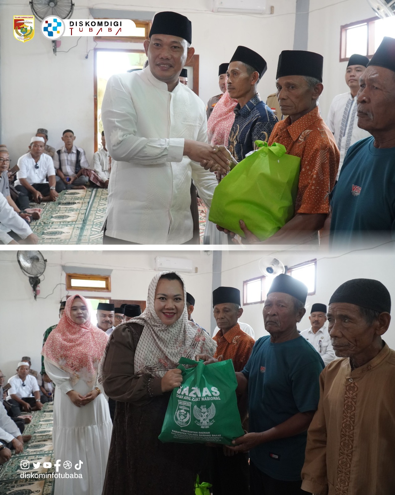 “Terakhir, atas nama Pemerintah Kabupaten Tubaba saya ucapkan trima kasih kepada jamaah Masjid Baiturrahman dan warga masyarakat Tiyuh Agung Jaya yang telah hadir di tempat ini, yang telah menyambut kedatangan kami, dengan penuh kehangatan, kebersamaan dan kekeluargaan,” pungkasnya.