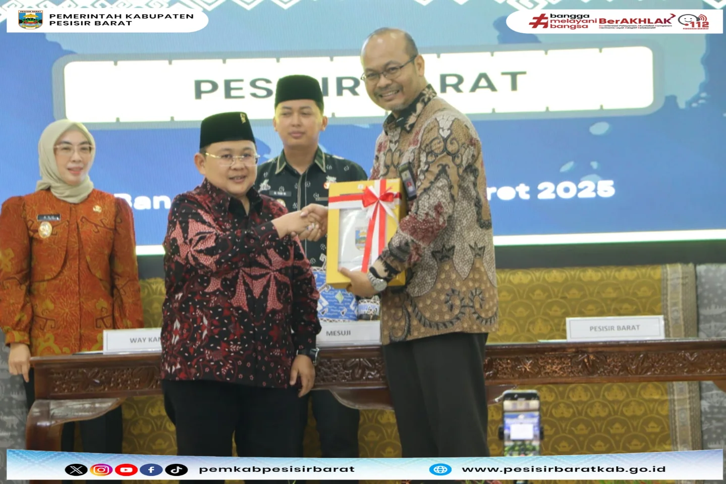 PESISIR BARAT – Kepala Dinas Komunikasi, Informatika, Statistik, dan Persandian (Diskominfotiksan), Suryadi, S.IP., M.M., menginformasikan bahwa Wakil Bupati Pesisir Barat (Pesibar), Irawan Topani, S.H., M.Kn., telah menyerahkan Laporan Keuangan Pemerintah Daerah (LKPD) Tahun 2024 Unaudited kepada Badan Pemeriksa Keuangan (BPK) Perwakilan Provinsi Lampung, di Sekretariat BPK Perwakilan Provinsi Lampung, Bandar Lampung, pada Kamis (27/3/2025).